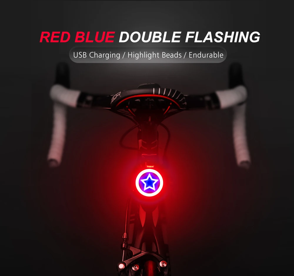 Product Detail: Brand: COOLCHANGE Name: Round taillight (pentagonal star) Weight: About 22g Color: Red;Blue Material : PC shell + silicon Specifications: Length 60mm / width 20mm / height 58mm Features: 1. Charging warning function (red light when charging, orange light when fully charged 2. USB charging