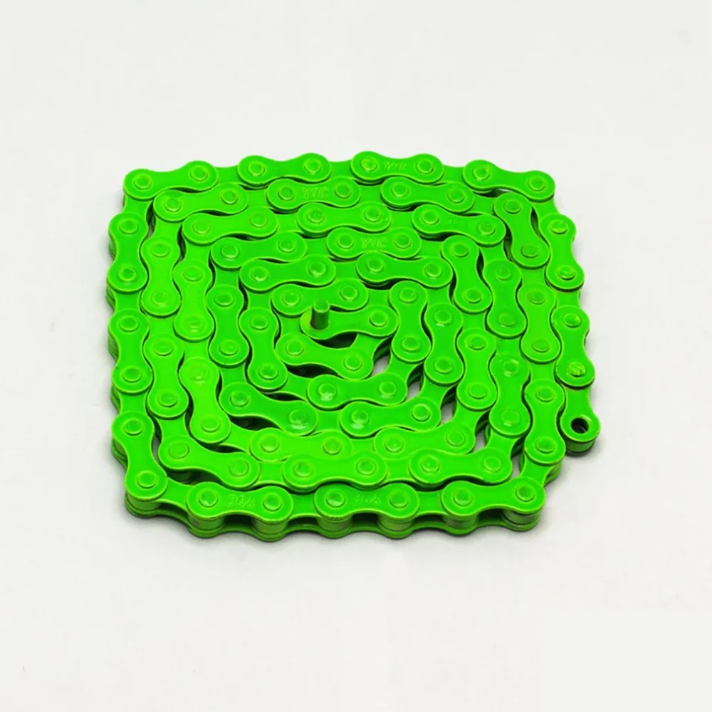 Features: Compatiblewithsinglespeedmountainbikesandroadbikes. Highqualitysteelkeepsthechaindurable. Thechainisstretch-resistantandcanwithstandmorewear,whichmeansyougetmorebikechainmileage. Theinnerandouterpanelsimprovecontactwiththerearsprocketforsmooth,quietshifting. Newtreatmentsareusedontheboardandallowthemtoeasilyrotatearoundthetransmission,gearsandlinks. Description: Highqualitysteelkeepsthechaindurable. Compatiblewithsinglespeedmountainbikesandroadbikes. Specifications: ItemNo.:666 Material:Steel Color:white,yellow,red,green,blue,brown,Silver,Pink PackageIncluded: 1*bicyclechain Notes: 1.Duetothedifferencebetweendifferentmonitors,thepicturemaynotreflectthecurrentcoloroftheitem.Weguaranteethestyleisthesameasshowninthepictures. 2.Duetothemanualmeasurementanddifferentmeasurementmethods,pleaseallow1-3cmdeviation.Thanks!